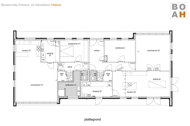 Deze woning is geheel op maat ontworpen met woonruimte met bad- en slaapkamer op de begane grond voor ouders en een volledige woning voor hun kinderen en kleinkinderen op begane grond en verdieping, waarbij een eigen tuin en privacy voor beiden een uitgangspunt.